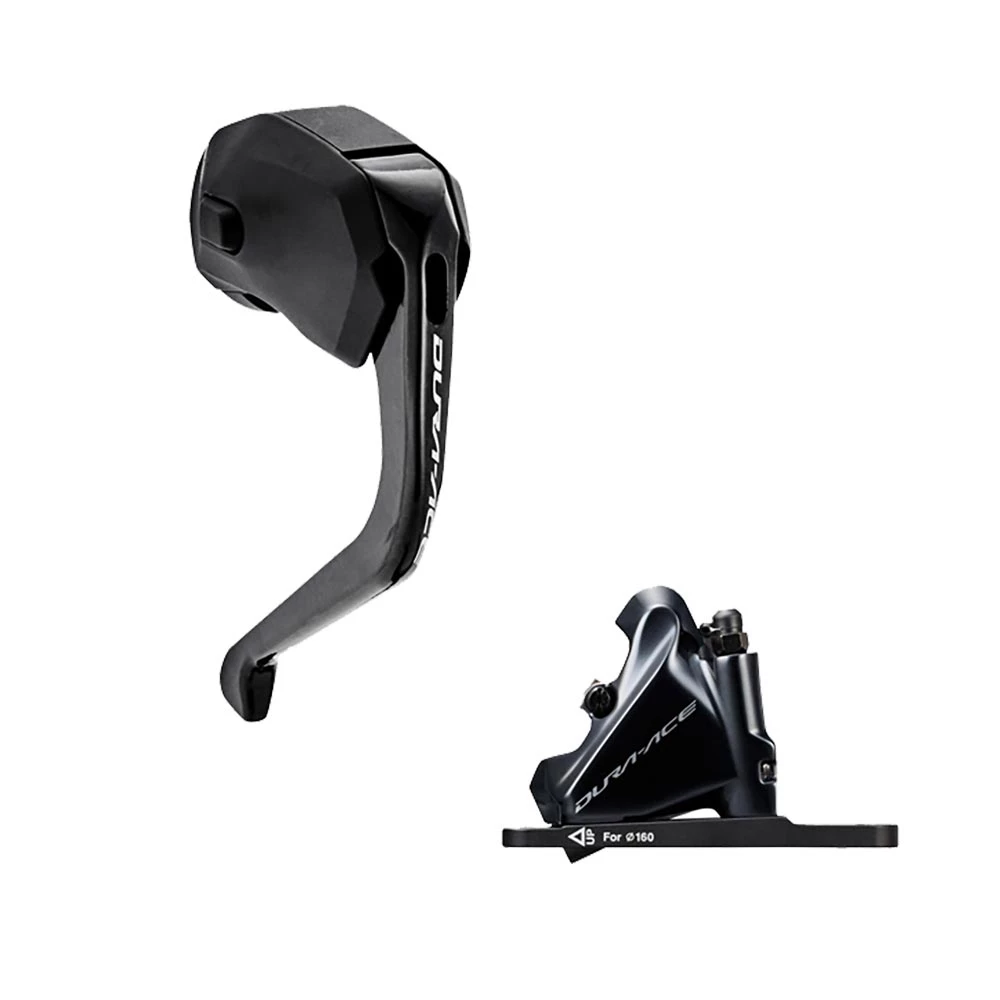 Im Lieferumfang : Dura Ace STI Di2 Disc Schaltbremshebel Shimano STR9180, Dura Ace Bremssattel Shimano BRS9170 mit Adpater, Bremsbelaege L02A, Bremsleitungen 100