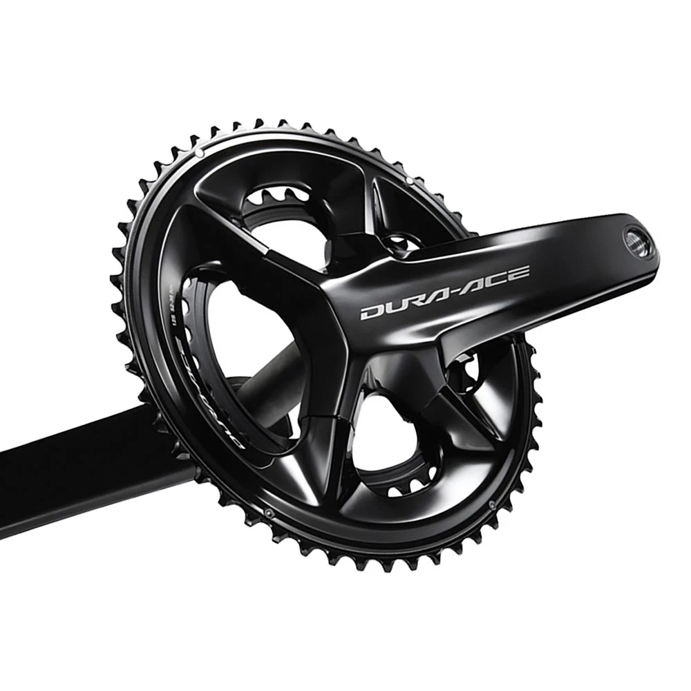 Hohlgeschmiedetet Kettenblaetter aus Aluminium und Carbonfaserverstaerktem Kunststoff, duennwandige hohlgeschmiedete Kurbelarme und Reduzierung der Aussenflaeche senken das Gewicht der neuen Dura Ace 12 fach Kurbelgarnitur FCR 9200. Das Design der 2×11-fach Hollowtech II Kurbelgarnitur sorgt fuer eine gesteigerte Performance. Als ein zentraler Baustein in Shimanos neuem 12-fach Dura Ace Serie zeichnet sich die FC-R9200 Kurbelgarnitur durch die Shimano typische Schaltqualitaet und Uebertragungseffizienz aus. Ueberarbeitet fuer nahtlose 12-fach-Schaltfunktion, ist die Dura Ace Kurbelgarnitur in Laengen von 160 bis 177,5 mm erhaeltlich. Dies bedeutet mehr Leistung und verbesserte Anpassungsmoeglichkeiten fuer kleinere Fahrer, Triathleten und Fahrer mit besonderen biomechanischen Anforderungen.