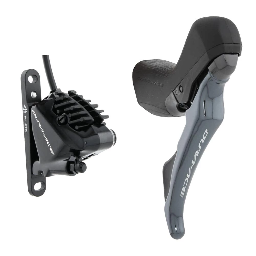 Im Lieferumfang : Dura Ace STI Disc Schaltbremshebel Shimano STR9120 links, Dura Ace Bremssattel Shimano BRS9170, Bremsbelaege L02A, Bremsleitung 100 cm Laenge, ohne Mineraloel