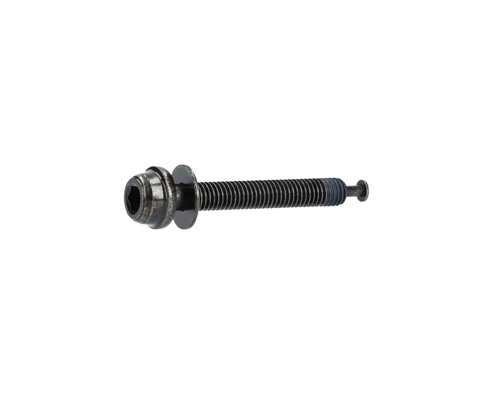 Die Befestigungsschraube fuer die Shimano Flat Mount Bremssaettel. Fuer unterschiedlich dicke Hinterbauten bietet Shimano diese Schrauben auch in unterschiedlichen Laengen an.