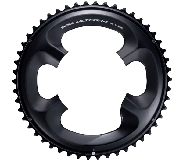 Lochkreis 110 mm, asymetrisch, 4 Arm. Die Ultegra Kettenblaetter aus Aluminium/Carbonfaser verstaerktem Verbund sind sehr seitensteif und trotzdem leicht 117 Gramm bei 50 Zaehnen. Die Kettenblatt Schrauben Aufnahme ist in das Kettenblatt integriert .