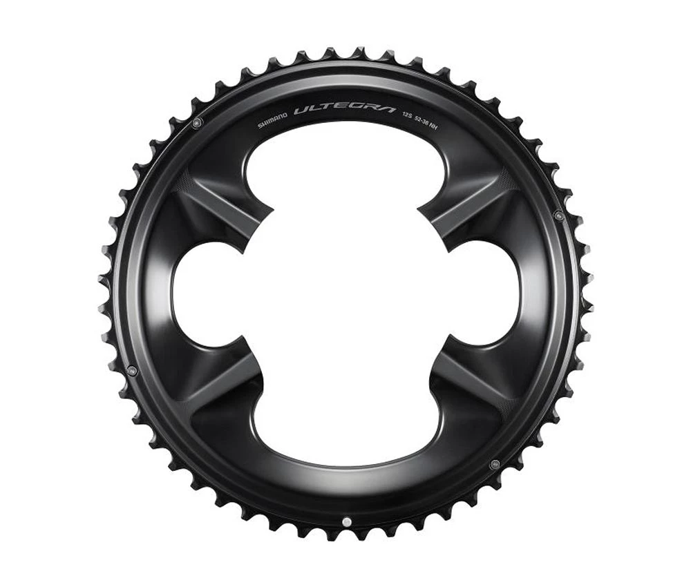 Shimano Ultegra Kettenblatt, 52 Zaehne, NH-Type, 110 mm Lochkreis asymmetrisch, Kettenlinie 44,5 mm, aus Aluminium/ Carbonfaserverstaerktem Kunststoff. Herstellerhinweis: Fuer die optimale Shimano Schaltperformance, duerfen nur Kettenblaetter mit NH Typenbezeichnung miteinander kombiniert werden.