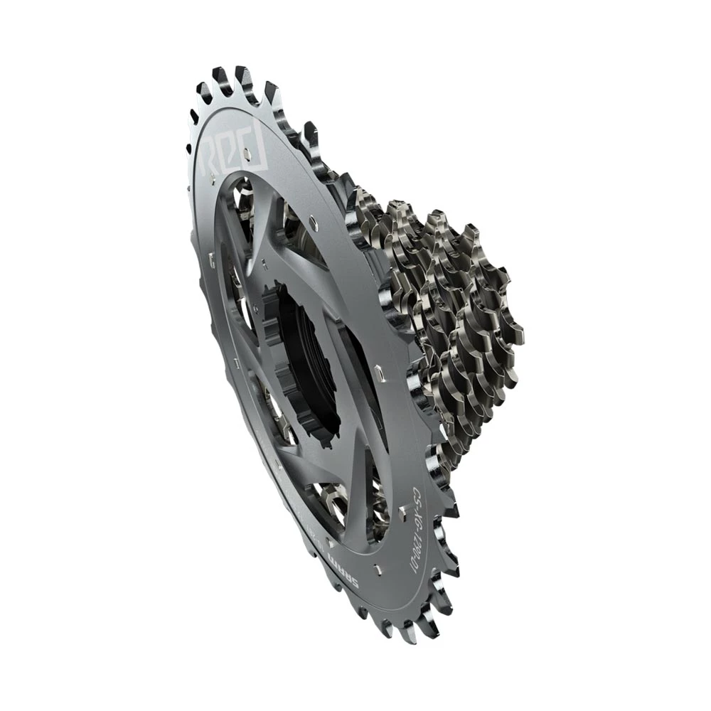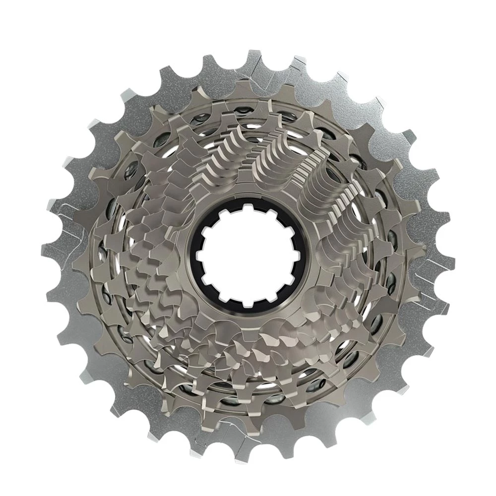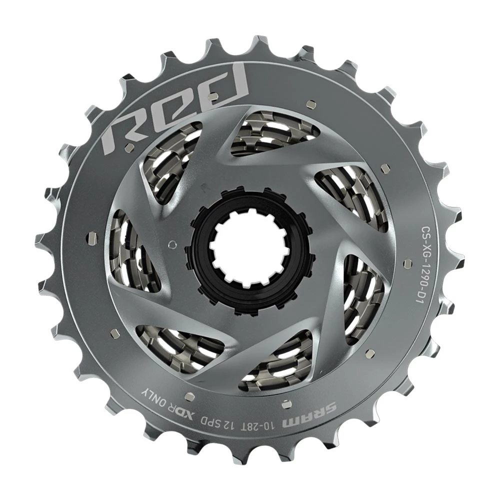 Die Red AXS XG 1290 Powerdome bietetn die breiteste Uebersetzungsbandbreite aller Rennrad Kassetten. Perfect auf die Sram eTap AXS Schaltung und Kette abgestimmt bieten die Kassetten dank verbesserter Schaltweiche hervorragende Schaltperformance. Sie sind extrem leicht, geraeuschlos und bietet einen klaren Leistungsvorteil. Die mittleren Ritzel wurden aus einem einzelnen Block hochwertigen Werkzeugstahls gefertigt. Sie bieten eine hoehere Steifigkeit und wiegen dabei weniger als eine Titankassette.