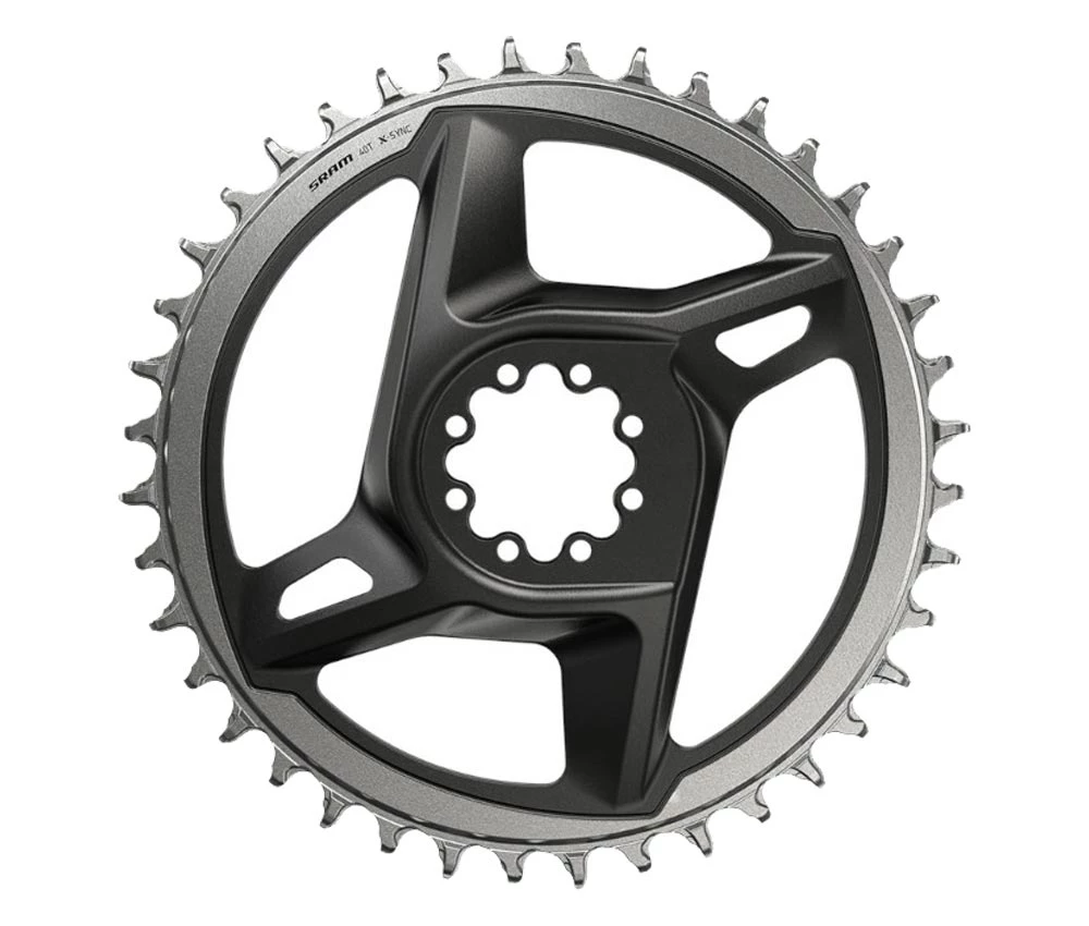 Das Kettenblatt fuer die Sram Red, Force und XPLR 12 fach Road und Gravel Kurbeln AXS. Diese Kettenblatt mit der 8 Punkt Verschraubung spatrt Gewicht und hat die X Sync 2 Technik zur sauberen Fuehrung der Kette.